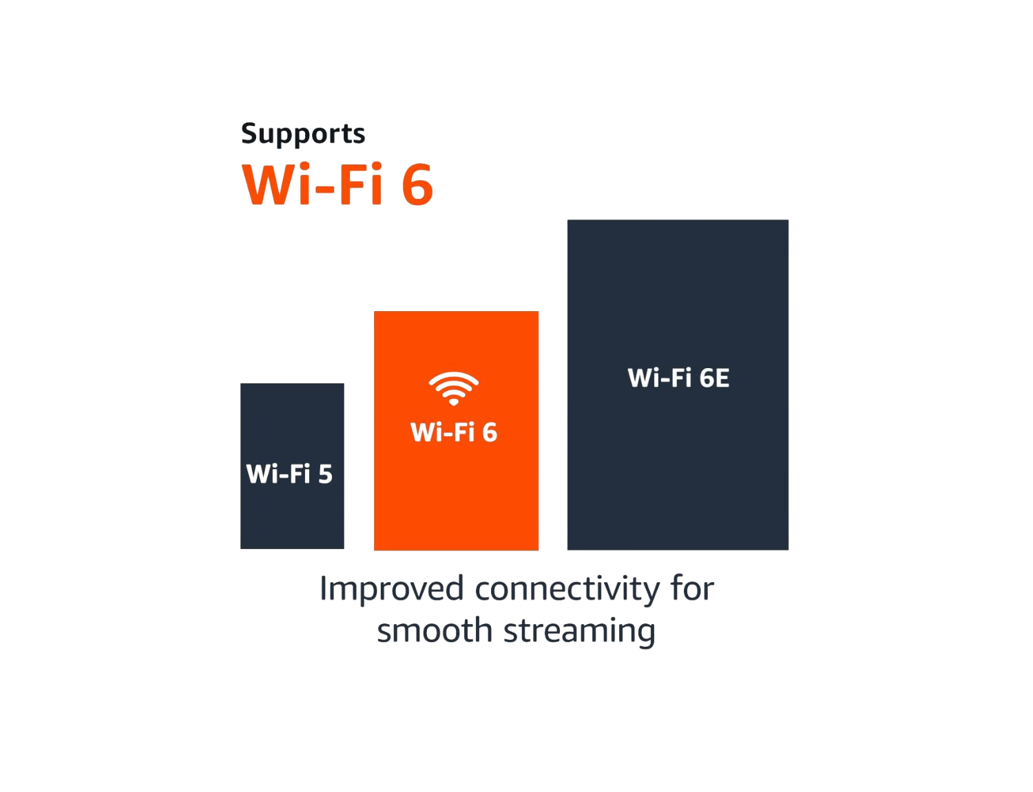 - Conexión Wi-Fi 6 – Transmite en 4K de manera fluida incluso si varios dispositivos están conectados a tu red.