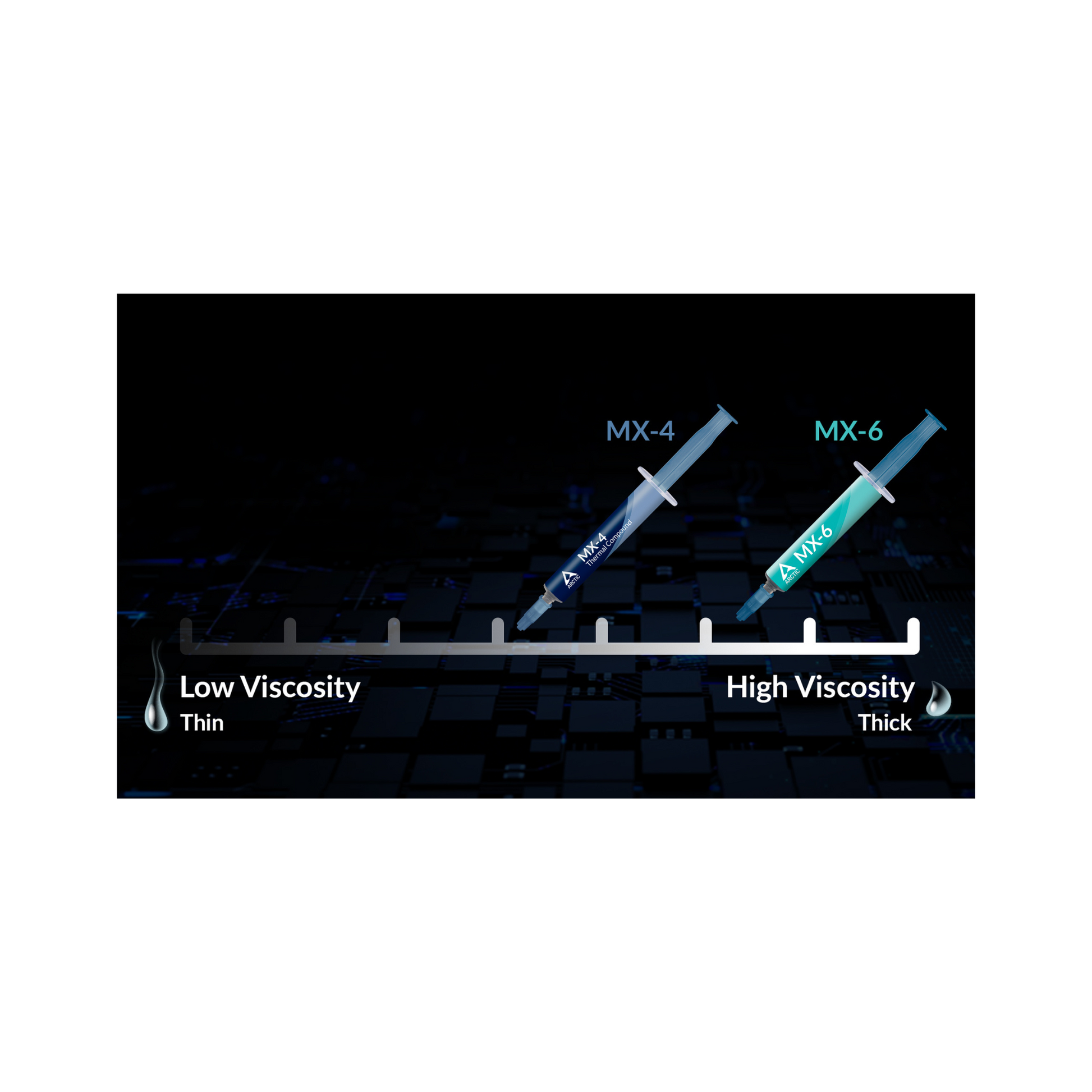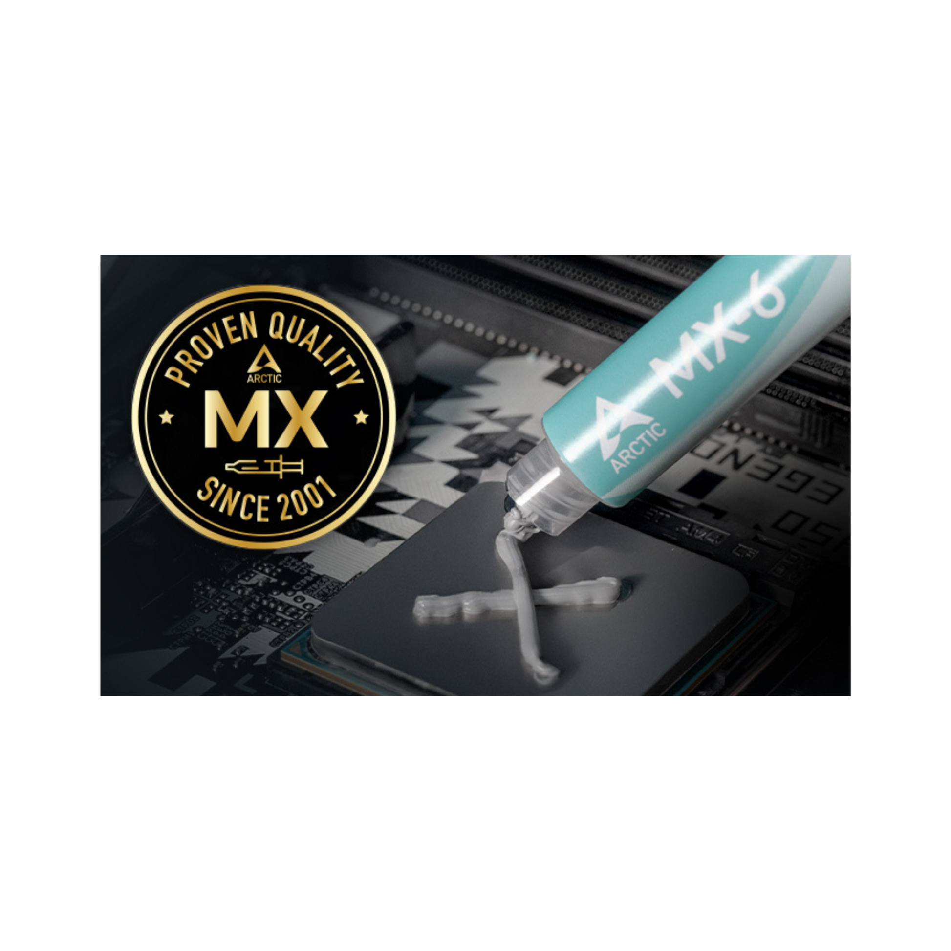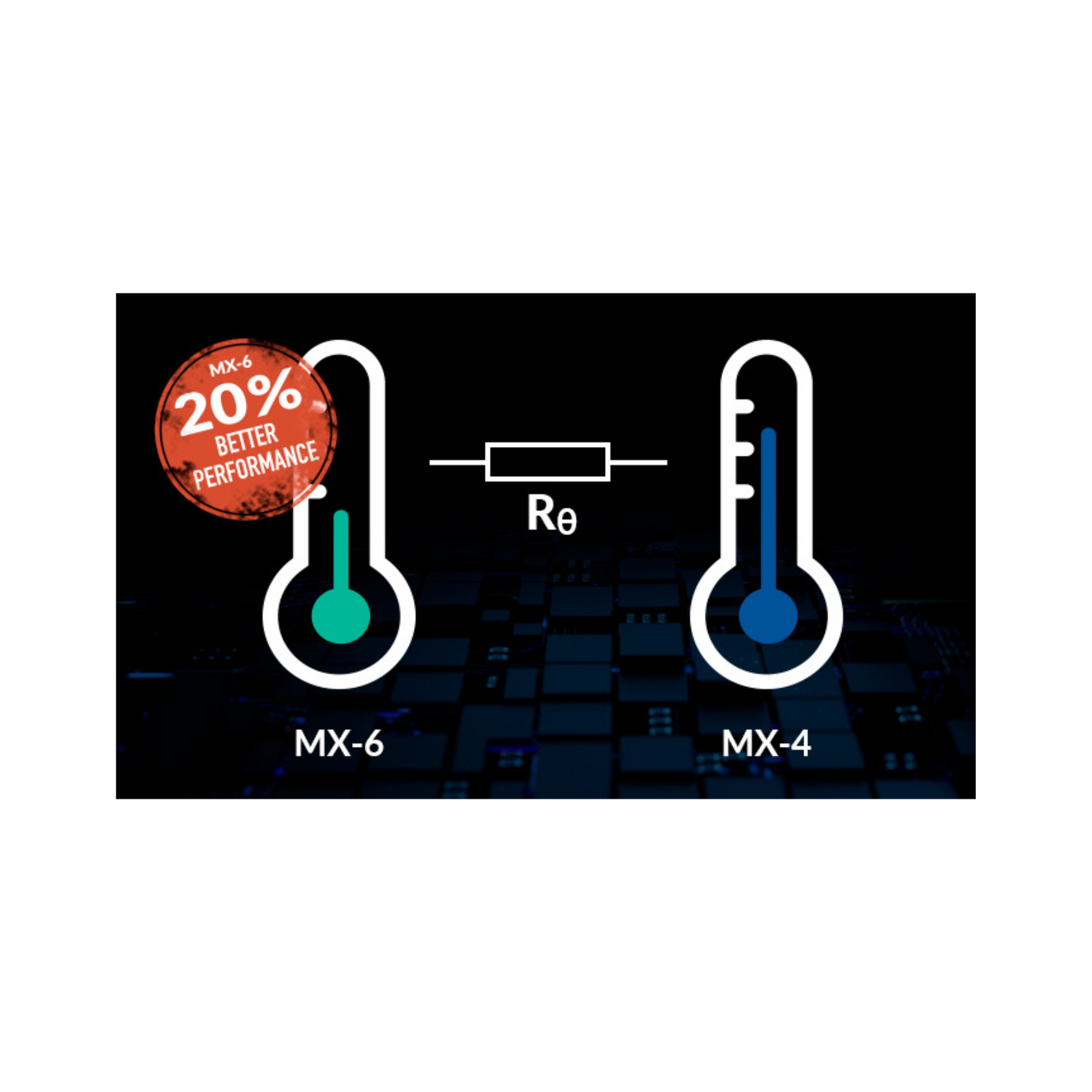 Gracias a una fórmula mejorada, el ARCTIC MX-6 ofrece una conductividad térmica superior al modelo MX-4, lo que se traduce en una menor resistencia al calor y una disipación más eficiente. -