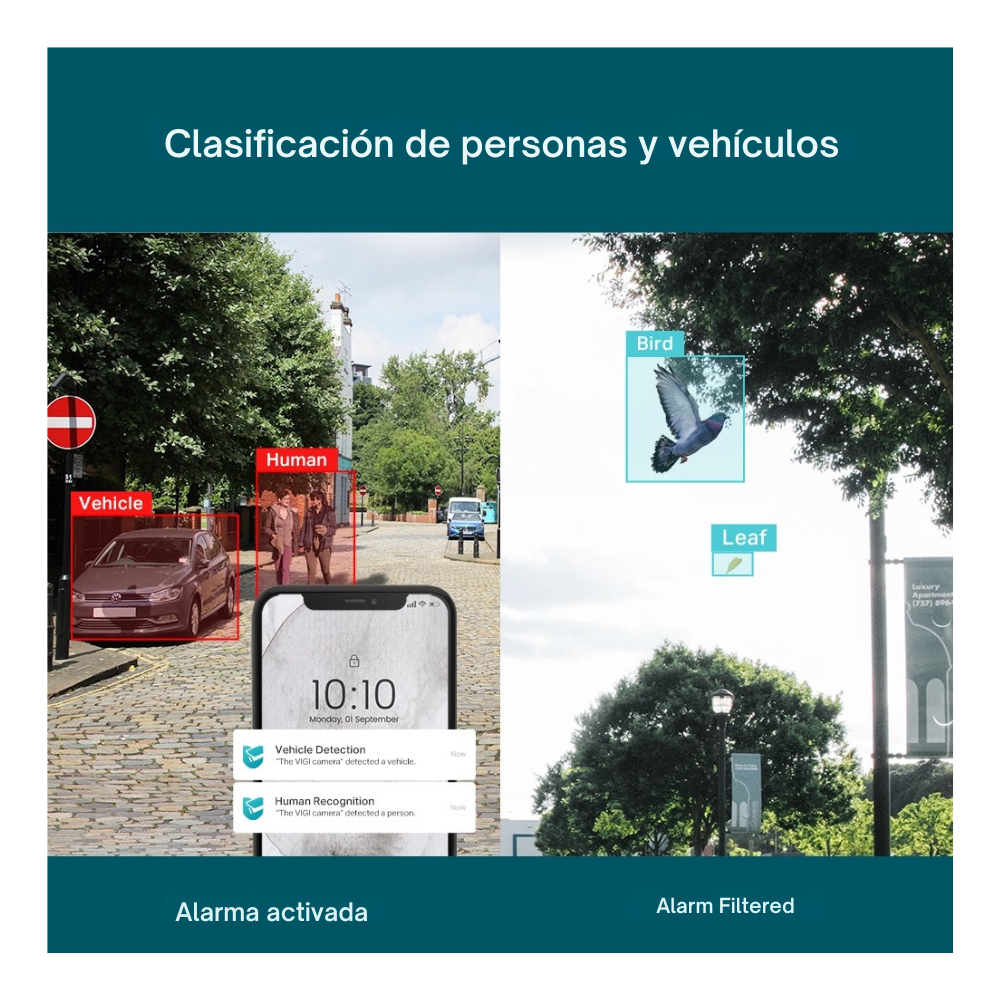 - Detección inteligente. Recibe notificaciones cuando alguien accede a zonas restringidas, manipula la cámara y cuando se extraen o abandonan objetos.