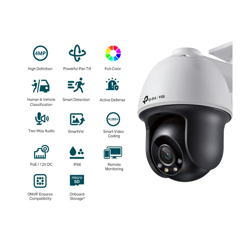 - Súper alta definición de 4MP. La cámara VIGI C540 captura imágenes nítidas de gran calidad en resolución de hasta 2560×1440 pixeles.