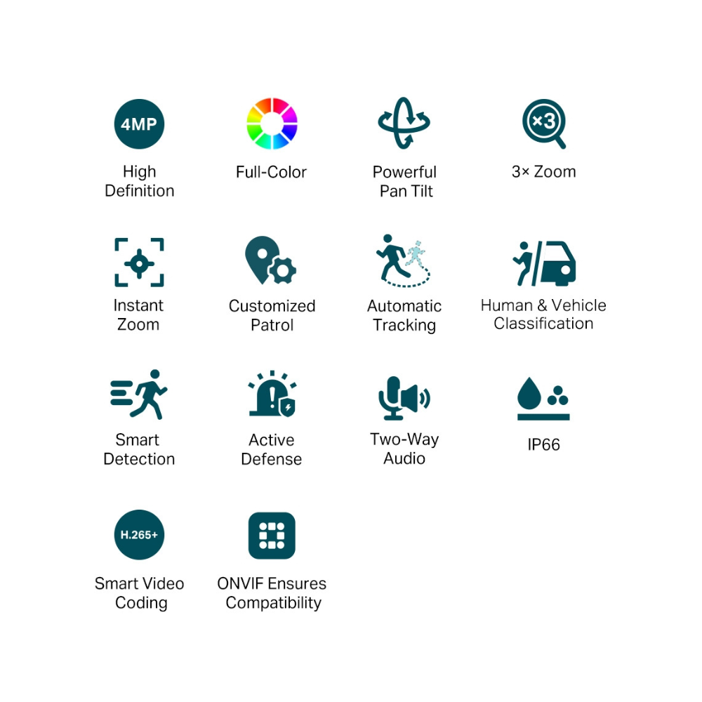 - Súper alta definición de 4MP. La cámara VIGI C540V captura imágenes nítidas de gran calidad en resolución de hasta 2560×1440 pixeles.