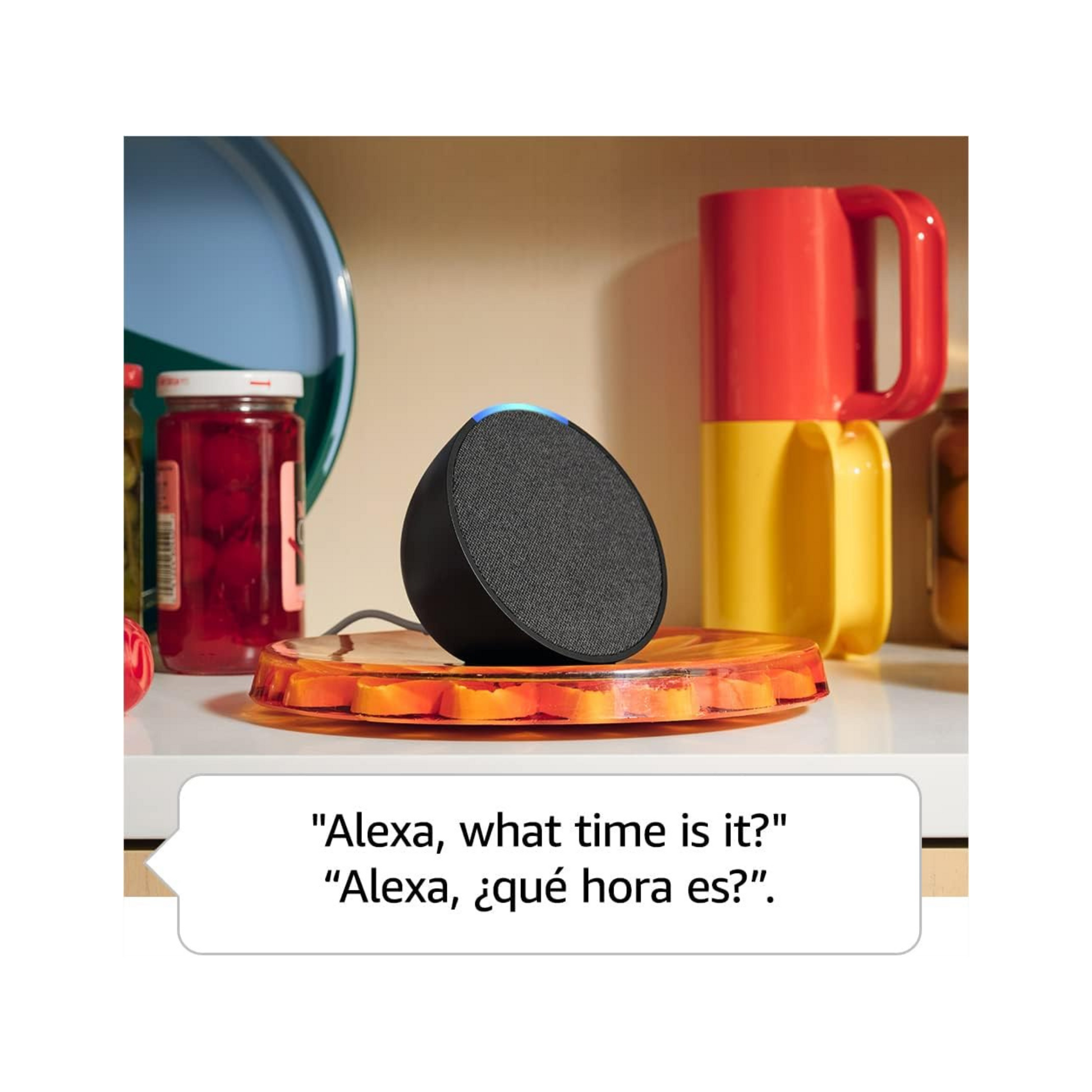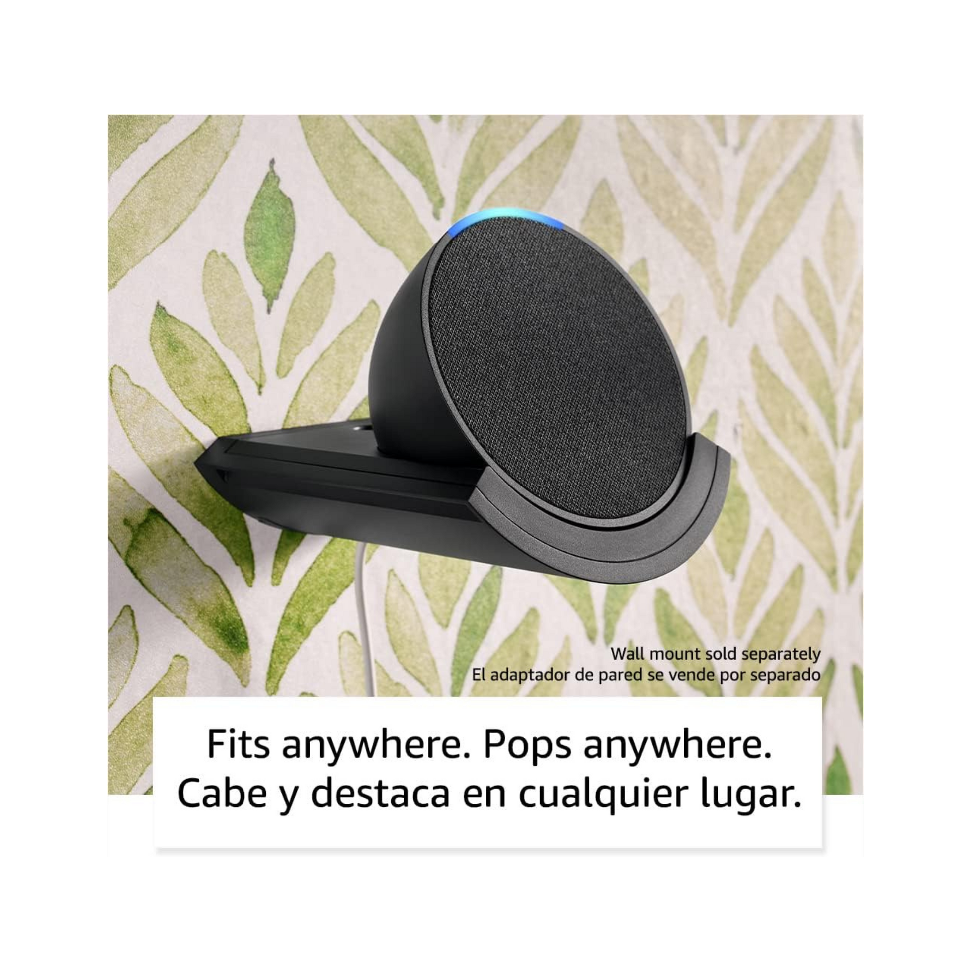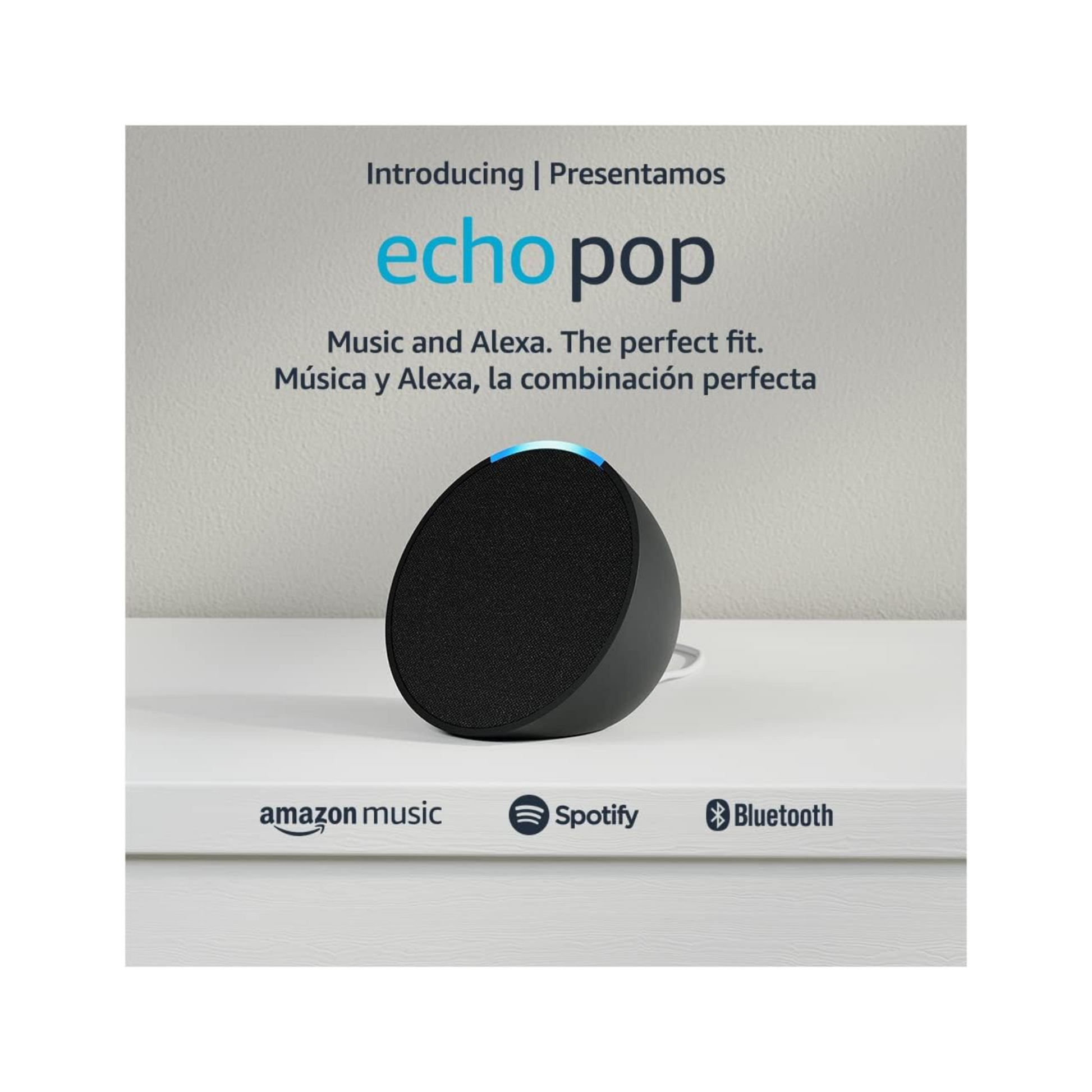 Echo Pop Parlante inteligente y compacto con sonido definido y Alexa versión internacional con adaptador de corriente (15 W) de Estados Unidos (Carbón)