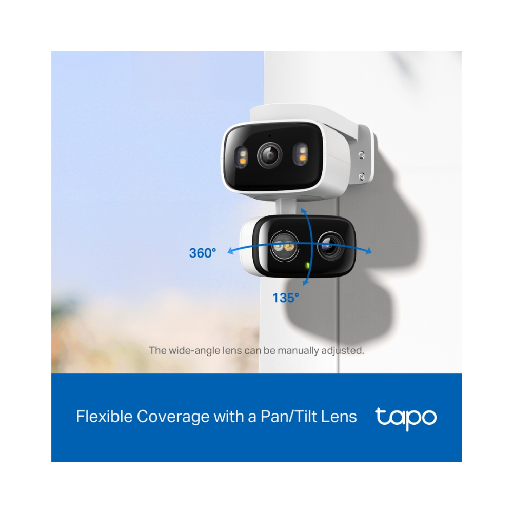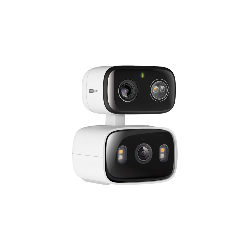 - Lente dual 2K de 3 MP: captura la imagen completa con óptica dual de alta definición 2K, monitoreando dos áreas separadas simultáneamente con un solo dispositivo. Diseñada para minimizar los puntos ciegos y lograr una cobertura óptima.