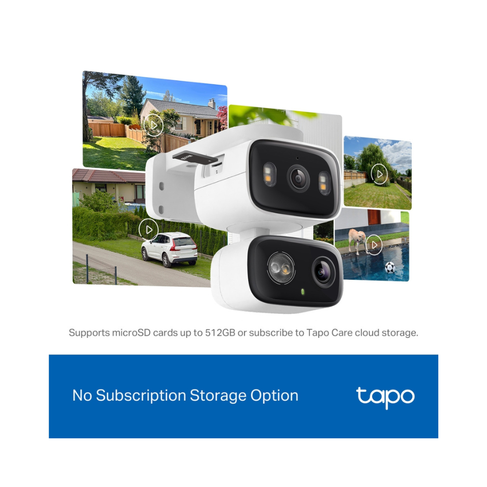 - Almacenamiento local o en la nube seguro : guarde el metraje de forma continua en una tarjeta microSD de hasta 512 GB (no incluida) o suscríbase a Tapo Care para almacenamiento en la nube que guarda videos de 30 días.